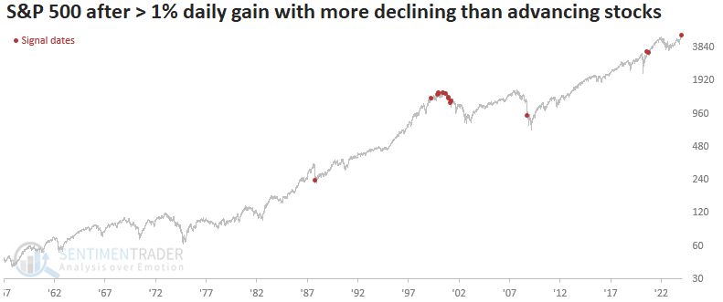 With these underlying divergences, committing capital to bearish positions is challenging. Breadth strengthened with more volume flowing into rising stocks than falling ones. This wouldn’t happen in a sell-everything scenario, explaining the hesitation to sell.