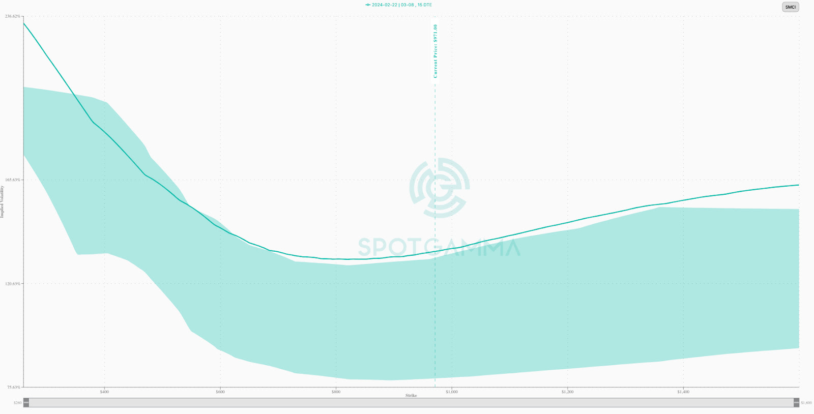 This action is apparent elsewhere, too, in the S&P 500 (as can be seen via the SPX cross-sectional skew graphic from Cboe above), where it’s proving quite sensitive, as well as single stocks like NVDA and Super Micro Computer Inc (NASDAQ: SMCI). We provided examples this year where steepening call skew helped reduce the cost of trades we used to capture the upside. In one case, we removed SMCI butterfly and ratio spreads for tens of thousands of percent in profit (e.g., $0.00 → $10.00)!